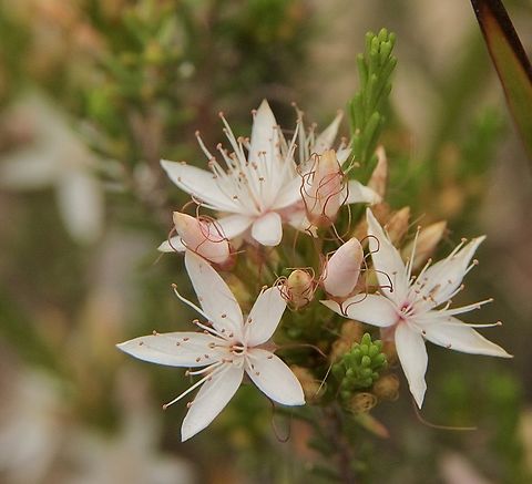 ''Calytrix tetragona'' is an Australian shrub in the myrtle family. Common names include common fringe-myrtle. It is a widespread plant growing in many parts of southern Australia. It ranges from high rainfall areas to semi-arid zones. It is found on skeletal or sandy soils. It can be used as a garden plant.