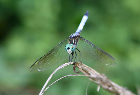 The blue dasher is an insect of the skimmer family. It is the only species in the genus "Pachydiplax". It is very common and widely distributed through North America and into the Bahamas.