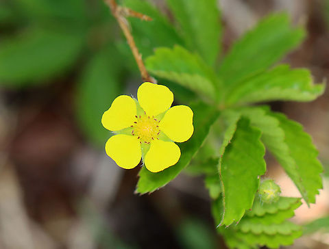"Potentilla reptans", known as the creeping cinquefoil, European cinquefoil or creeping tormentil, is a plant in the Rosaceae family. Potentilla reptans can be an invasive weed in lawns and flowerbeds and difficult to eradicate, particularly when it competes with and infests established groundcovers. All of the taproots must be dug up, or the plant will reappear.