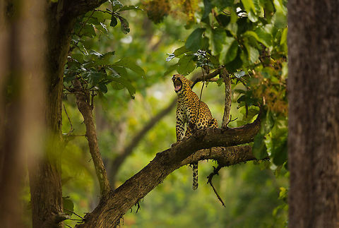 Sitting atop a big rock the fellow was spotted accidently by a tourist in the jungle of Pench, India. It gave us enough time and posses to get some nice shots. Most of us go looking for Tigers but after seeing this fellow I realised that these guys are as beautiful as the tiger. They are solitary animals and are very shy. Their ability to climb trees and drag their kill (nearly their weight) up a tree makes them different from other cats. Very strong shoulders help them to do so. Can laze on trees for hours.