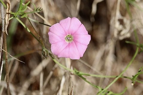 Laguna de la Mata, Torrevieja, España (2012). Is a species of morning glory known native to the Mediterranean Basin, but it is occasionally seen in other areas of similar climate. This is a climbing perennial plant with solitary flowers on long peduncles. The flower is a funnel-shaped pink bloom 3 or 4 centimeters wide. The leaves are deeply divided into narrow, fingerlike lobes.
