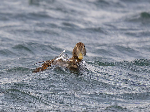 The Common Eider is a large sea-duck that is distributed over the northern coasts of Europe, North America and eastern Siberia. It breeds in Arctic and some northern temperate regions, but winters somewhat farther south in temperate zones, when it can form large flocks on coastal waters. It can fly at speeds up to 113 km/h.