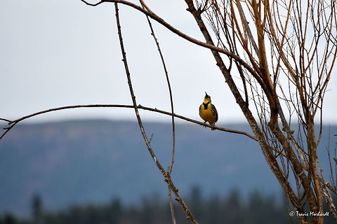 The western meadowlark is a medium-sized icterid bird, about 8.5 in long. It nests on the ground in open country in western and central North America grassland. It feeds mostly on insects, but also seeds and berries. It has distinctive calls described as watery or flute-like, which distinguish it from the closely related eastern meadowlark.