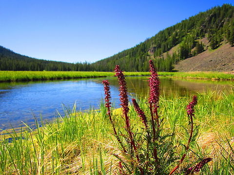 ''Pedicularis groenlandica'' is a showy flowering plant in the broomrape family which is known by the common names elephant's head and elephanthead lousewort. This erect plant can grow to a height of 80 centimeters. Its sharply-toothed fernlike leaves are located low on the stout stem. The stem is topped with a large inflorescence of bright pink to purple or white flowers. Each flower has a long, pointed beak which curves upward, superficially resembling the trunk of an elephant, and the lateral.. more