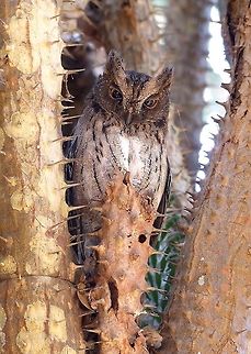 A tiny owl also known as the Malagasy scops owl. It hunts mostly at night, and rests at day as seen here. Technically, the western species seen here used to be called the Torotoroka Scops Owl (Otus madagascariensis) yet the two species were lumped together as a single species in 2007.