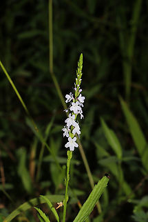 Narrowleaf Vervain (Verbena simplex) Tiny flower spike at the edge of a dense mixed forest. <br />