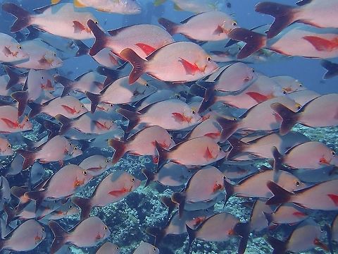 The humpback red snapper or paddletail snapper, ''Lutjanus gibbus'', is a species of snapper native to the Indian Ocean from the coast of Africa and the Red Sea to the western Pacific Ocean. It is mostly an inhabitant of coral reefs at depths of from 1 to 150 m , with the juveniles being found in beds of seagrass or on sheltered coral reefs and subadults and adults found on sloping substrates. This species can reach a length of 50 cm . It is a commercially important species, as well as being sought.. more