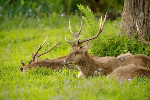 The Javan rusa or Sunda sambar is a deer native to the islands of Java, Bali and Timor in Indonesia. It is also an introduced species in Irian Jaya, Borneo , the Lesser Sunda Islands, Maluku, Sulawesi, Pohnpei, Fiji, Tonga, Samoa, Vanuatu, Solomon Islands, Christmas Islands, Cocos Islands, Nauru, Australia, New Caledonia, New Zealand, Papua New Guinea, New Britain and New Ireland.