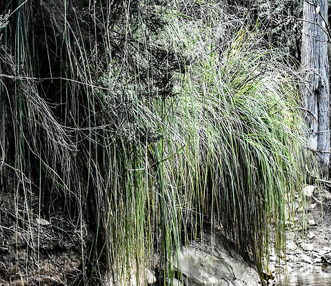 ''Gahnia rodwayi'', a small, grass-like plant found in the dry forests in the southeast of Tasmania, generally flowers between October and January. This species grows in moist soil beside water, in shady forest gullies and in dappled to semi-shade. ''Gahnia grandis'' is widespread in all regions of Tasmania except the midlands and the northeast, growing in poorly-drained soil types from sea-level to the mountains. It is also found on the margins of wetlands and forests, in riparian areas on button grass heaths, and along road cuttings and ditches.''Gahnia grandis'' is a very hardy, perennial grass species with woody rhizomes, which forms large tussocks. Most of the year it is found in moist soil, often subject to periodic inundation. Once it is established, cutting grass is drought and wind tolerant. The flowering season is from spring through summer. Seed maturity can be predicted by the colour of the flower head, the bright brown immature fruits turning black at maturity. At this stage they are ready for use in food preparation.