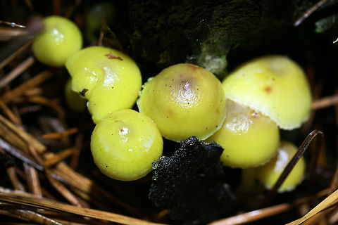 ''Mycena epipterygia'' has a sticky, elastic and deductible surface. Its cap is one to two centimetres wide and its colour varies over yellowish brown to gray-brown. The stipe is yellowish to yellow-green.The gills are white to white-grey, sometimes with brown speckles. The spores are amyloidic and have a length of 8 to 10 micrometres and a width of 4 to 5.5 micrometres.